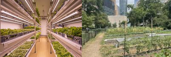 - rooftop farms, outdoor vertical production, and green walls;